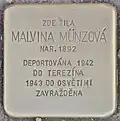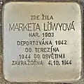 MARKETA LÖWYOVÁ BORN 1903 DEPORTED 1942 TO THERESIENSTADT 1944 TO AUSCHWITZ MURDERED 4 October 1944 |