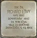 RICHARD LÖWY BORN 1892 DEPORTED 1942 TO THERESIENSTADT 1944 TO AUSCHWITZ MURDERED 1 October 1944 |