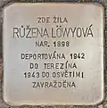 RŮŽENA LÖWYOVÁ BORN 1898 DEPORTED 1942 TO THERESIENSTADT 1943 TO AUSCHWITZ MURDERED |
