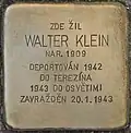 WALTER KLEIN Born 1909 DEPORTED 1942 TO THERESIENSTADT 1943 TO AUSCHWITZ MURDERED 20 January 1943 |
