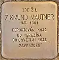 ZIKMUND MAUTNER BORN 1901 DEPORTED 1942 TO THERESIENSTADT TO AUSCHWITZ 1943 MURDERED |