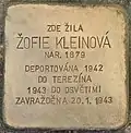 ŽOFIE KLEINOVÁ Born 1879 DEPORTED 1942 TO THERESIENSTADT 1943 TO AUSCHWITZ MURDERED 20 January 1943 |