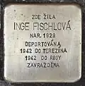 Inge Fischlová was born on 28 May 1929 in Liberec. Her parents were Gustav Fischl and Adéla née Mosauerová. She had an younger sister, Hansi (born 1932). The sisters grew up in Czechoslovakia, and when their Grandfather died they moved with their parents to Carlsbad/Karlovy Vary. They moved to Prague together with their parents and their grandmother Gisela Mosauerová. On 3 August 1942, Inge Fischlová, her parents and her sister were deported to Theresienstadt concentration camp by transport AAw. Her transport number was 312 of 1,001. After seventeen days there, the family was deported to Riga Ghetto by transport Bb. Her transport number was 520 of 1,001. There, father, mother and their daughters, age 10 and 13, were murdered by the Nazi regime.[9]