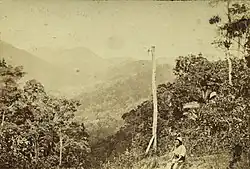 In 1863, explorer George Elphinstone Dalrymple, in partnership with Arthur and Walter Scott, had taken up the Valley of Lagoons run, which was separated from the coast by two densely forested mountain ranges – the eastern range now known as Cardwell Range, and the inner Seaview Range. Early in 1864 Dalrymple, with Queensland Government sanction though not funding, sailed from Port Denison (Bowen) to Rockingham Bay/Port Hinchinbrook, where he established a settlement to be named Cardwell, then turned his attention to finding a dray route west to the interior and the Valley of Lagoons. After an initial unsuccessful attempt to penetrate the Cardwell Range near Meunga Creek, Dalrymple discovered an Aboriginal path leading directly to what became known as Dalrymple Gap, between Mount Leach and Mount Arthur Scott, about 10 miles (16 km) south of the settlement at Port Hinchinbrook. Beyond lay the Herbert River valley, and beyond this the Seaview Range, which was crossed with considerable difficulty to reach the Valley of Lagoons on the Burdekin. On their return journey, Dalrymple's party cleared, and in parts formed, a rough dray track to the coast.[1]