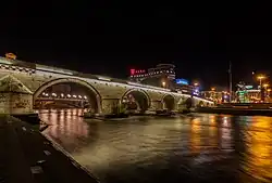 The Stone Bridge (Macedonian: Камен мост, romanized: Kamen most ⓘ; Albanian: Ura e gurit; Turkish: Taşköprü) is a bridge across the Vardar River in Skopje, the capital of North Macedonia, built by Sultan Mehmed the Conqueror.