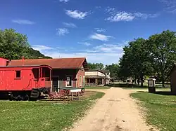 Stonefield, located at 12195 County Road VV outside Cassville, Wisconsin, United States, was the 2,000-acre (800-hectare) estate of Wisconsin's first governor, Nelson Dewey. Much of the original estate has been separated into Nelson Dewey State Park and the Stonefield historic site, an expansive museum operated by the Wisconsin Historical Society. The historic site takes advantage of the large property by offering several different areas for visitors, including an early Wisconsin farmhouse, a re-created agricultural village built to resemble those common around 1900, and a reconstruction of Nelson Dewey's home. Stonefield is also home to the Wisconsin State Agricultural Museum, which features a large collection of antique farm equipment.
