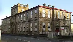 The main building at Gallowflat was soon replaced by a nursing home, David Walker Gardens, opened in 2011.[18][19][20] The remaining east block at Gallowflat (the home economics department, its age reflected in its 'Girls' carving above the door – the demolished 'Boys' block further west housed the technical subjects) is also Category B listed but lay empty and disused for over two decades; plans to convert it into residences were approved in 2015[21][22] and this was eventually completed by 2024.[23]