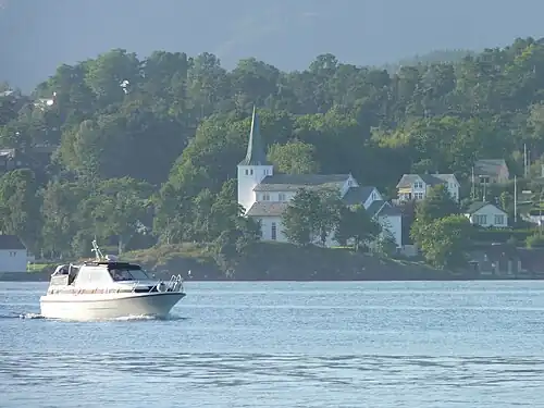 Stord Church (Norwegian: Stord kyrkje) is a parish church of the Church of Norway in Stord Municipality in Vestland county, Norway. It is located in the town of Leirvik on the southern side of the island of Stord. It is the church for the Stord parish which is part of the Sunnhordland prosti (deanery) in the Diocese of Bjørgvin. The white, stone church was built in a long church design in 1857 using plans drawn up by the architects Andreas Grønning and Frederik Hannibal Stockfleth. The church seats about 400 people.[1][2]