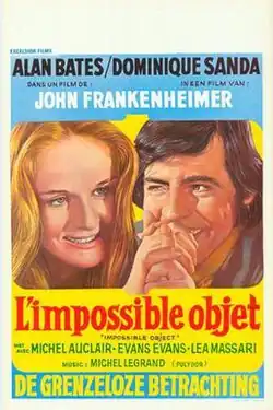 Impossible Object (French: L'Impossible Objet), also known as Story of a Love Story, is a 1973 romantic drama film starring Alan Bates and Dominique Sanda. It was directed by John Frankenheimer with a screenplay by Nicholas Mosley based on his own novel. It was screened at the 1973 Cannes Film Festival, but was not entered into the main competition.[2] Mosley wrote the screenplay at the behest of director Joseph Losey, whose film Accident was based on an earlier Mosley novel. Dirk Bogarde and Catherine Deneuve had been attached to the film.[3] However, Losey had difficulty financing the film and later fell out with Mosley over The Assassination of Trotsky. Frankenheimer, looking to make an independent film, took over the project.