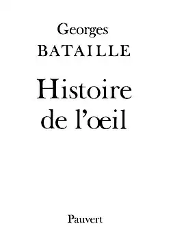 Story of the Eye (French: Histoire de l'œil) is a 1928 novella written by Georges Bataille as Lord Auch (literally, Lord "to the shithouse" — "auch" being short for "aux chiottes", slang for telling somebody off by sending him to the toilet), that details the increasingly bizarre sexual perversions of a pair of teenage lovers, including an early depiction of omorashi fetishism in Western literature. It is narrated by the young man looking back on his exploits. In 1940 an edition of Histoire de l'œil was illustrated by Hans Bellmer.