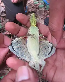 In India, a country he never visited, Strabo described small flying reptiles that were long with snake-like bodies and bat-like wings (this description matches the Indian flying lizard Draco dussumieri), winged scorpions, and other mythical creatures along with those that were actually factual.[17]