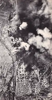 The French army on June 15, 1915, attacked the German town of Karlsruhe, killing 29 civilians and wounding 58. Further raids followed until the Armistice in 1918. In a raid in the afternoon of June 22, 1916, the pilots used outdated maps and bombed the location of the abandoned railway station, where a circus tent was placed, killing 120 persons, most of them children.