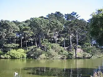 The Golden Gate Pavilion is a Chinese peace pagoda near the shore of Blue Heron Lake. It was given to San Francisco by Taipei, its sister city, in 1976.[4]