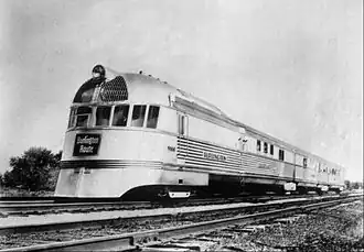 GM's project, originally called Train Y,[20] was marketed as the Aerotrain. It featured a futuristic, automotive-styled EMD LWT12 diesel–electric locomotive pulling aluminum coaches adapted from GM's long-distance bus design.[21] Two trainsets were produced in 1955 and were trialed by several railroads, but no orders were forthcoming. The two demonstration units were eventually sold to the Rock Island Line, which was already operating an EMD LWT12 paired with Talgo II cars from ACF Industries as the Jet Rocket. Rock Island operated them in commuter service until 1966.