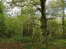 As is true in most of the Weald, Medieval Streat had much common land for people to graze their animals, make hay and garner other resources. A quarter of the common was ploughed up in 1258. Much later, between 1600 and 1684, the rest of the main commons of Streat were enclosed. Before its nineteenth century enclosure there was a third arm to Streat Green which tracked south through Riddens Wood (TQ 358 170) down to Riddens Farm, by the railway line. The braided paths can still be made out in the wood. It used to be called "Chinese Wood" because there was a Chinese temple there. The temple is now gone, but its existence explains the presence of bamboo and other exotic plants in the wood, alongside the sessile oak, gean, hornbeam and a wild service tree on the western boundary still bears seasonal fruits.[6] Now all that is left of the Commons are the two Streat greens, Streat Lane Green and Shergold's Farm Green, only parts of which are registered as common land, but remain open and public areas.