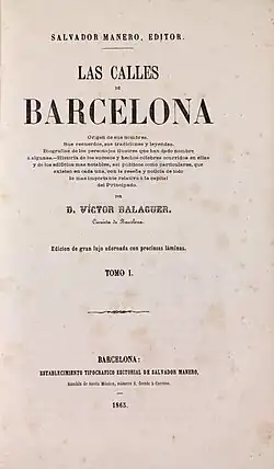 According to what is publicly said, the time is approaching to name several of the streets that are to form the new Barcelona, and there is no better occasion than the present to remedy the oblivion in which by bad luck have fallen certain glorious enterprises, certain famous names, which have been, and will always be, of glory for Catalonia.[74]