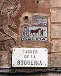 Some streets also used to be named for the presence of singular buildings (Palace, Cathedral) or various establishments (Hospital, New Baths). Tradition has it that the name Carassa Street comes from a carota on the corner between this street and Mirallers Street, which announced a nearby brothel.[39]