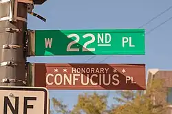 In 1981, Mike Royko attempted to rename a stretch of Evergreen Avenue in honor of Nelson Algren, who had long lived on the street.[3] Although mayor Jane Byrne received the proposal favorably and even put up signs, local backlash forced the City Council to formally veto the proposal.[4] To avoid repeating the incident, it was decided to start naming such streets honorarily rather than impact any addresses.[5] Such honorary streets have special signs that are brown, have the word "Honorary" at the top surrounded by the Chicago stars, and lack any directional information.
