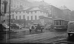 Prior to 1959, Montreal, Quebec, Canada had an extensive streetcar system. The streetcar network had its beginnings with the horsecar era of the Montreal City Passenger Railway in 1861. The initial line was along Rue Notre Dame (Notre Dame St) from Rue du Havre (Harbor St) to Rue McGill (McGill St).