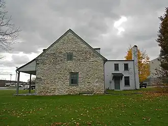 The farmhouse consists of three sections: a 1+1⁄2-story, two-bay by one-bay, Germanic-influenced, limestone main house, a 2+1⁄2-story, brick Georgian-style wing that was built circa 1835, and a two-story brick ell that was built circa 1865.