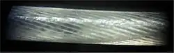Nylon is the most popular string material for amateur players due to its low cost and the improvement in elasticity offered by multi-filament strings.[10] Wear-resistant coatings for nylon strings are common, especially with multi-filament strings, because the outer filaments tend to break first as the racquet is used.[11]