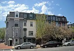 The residential buildings constructed during this period also included apartments, several of which are small and resemble rowhouses, and medium-sized buildings including: The Saint Clair at 1717 T Street NW, designed by Cooper in 1903, The Wilton at 1931 17th Street NW, designed by Beers in 1908, and The Livingston at 1741-43 T Street NW, designed by Hunter & Bell in 1917. The large apartment buildings were constructed on more prominent lots. Examples include: The Albemarle at 1830 17th Street NW, designed by Thomas Franklin Schneider in 1900, The Melwood and The Vernon at 1768 and 1774 U Street NW, designed by B. Stanley Simmons in 1906, The Belgrade and The Kirkman at 1918 and 1930 18th Street NW, designed by Beers and built by Harry Wardman in 1908, and Willard Courts, designed by Frank Russell White and built by Wardman in 1915.[2][3]