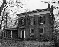 John Stoughton Strong, originally from Vermont, was instrumental in Strongsville's establishment and early growth. He drew in settlers from New York, Pennsylvania, and New England by driving cattle that he obtained to markets in those states. In the following years, he oversaw the development of settlements, roads, businesses, schools, and churches. He had the first mill built in 1820 on the Rocky River in Albion. While it is no longer standing, the dam and foundation still exist in what is now Bonnie Park. He also brought in settlers with specialized skills, such as Dr. William Baldwin as the town doctor.[8] The John Stoughton Strong House was added to the National Register of Historic Places on November 24, 1980.