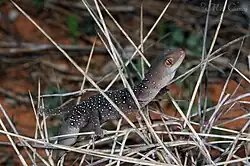 Strophurus elderi, also known commonly as the jewelled gecko, is a terrestrial, nocturnal species of gecko, a lizard in the family Diplodactylidae.[3] Previously classified within the genus Diplodactylus, S. elderi is one of 22 geckos belonging to the genus Strophurus.[4] The species is endemic to the arid regions of central and north-western Australia.[3]