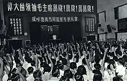Following the May 1967 riots in Hong Kong, the Struggle Committee published an English-language book titled The May Upheaval in Hong Kong, under the full name Committee of Hong Kong–Kowloon Chinese Compatriots of All Circles for the Struggle Against Persecution by the British Authorities in Hong Kong.[1] However, the group's full name in its original Chinese has been translated variously. An English translation of a Radio Guangdong report broadcast on 27 May 1967 gave the name "Hong Kong and Kowloon All Circles Struggle Committee to Oppose Persecution by the Hong Kong British Authorities".[2] Other translations include the "Hong Kong and Kowloon Struggle Committee of Chinese Compatriots from All Circles Against British Persecution" and the "Hong Kong–Kowloon All Sectors Anti-Persecution Struggle Committee".[3]
