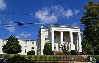 Old Main is a three-story, five-bay, brick Greek Revival style building completed in 1844, which was designed and built by Edwin Taylor. It has a two-story, three-bay, Doric order portico with a simple heavy frieze supported by four-paneled piers. It was added to the National Register of Historic Places in 1974. It is located in the Newtown Historic District. The school first only had 50 students in 1844. By the year of 1856, the school had grown to over 100 girls attending, including Eleanor Agnes Lee and Anne Custis Lee, daughters of Robert E. Lee.