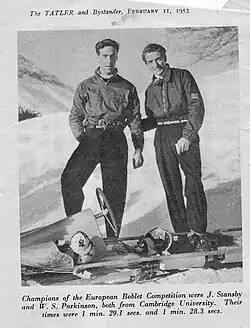Stuart Parkinson (31 May 1929 – 25 October 1989) was a British alpine skier and bobsledder. A former lieutenant in the Royal Engineers and 21 Special Air Service British army soldier, he competed in the men's downhill at the 1948 Winter Olympics and in the two-man and four-man bobsleigh events at the 1956 Winter Olympics.[1] Parkinson was the flag bearer for Great Britain at Cortina during the 1956 Olympics. Along with his 1956 Olympic partner Christopher Williams, Parkinson won the first ever Commonwealth Winter Games 2-man bob title in 1958, representing England.[2]
