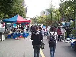 In the 1980s, communal and cultural events like traditional performances, mask dance and tug-of-war were held at the festival called Daedongje which means 'become all-together'. Many academic seminars, mock trials and debates were also held. However, these festivals were sometimes delayed because of frequent demonstrations.[28]