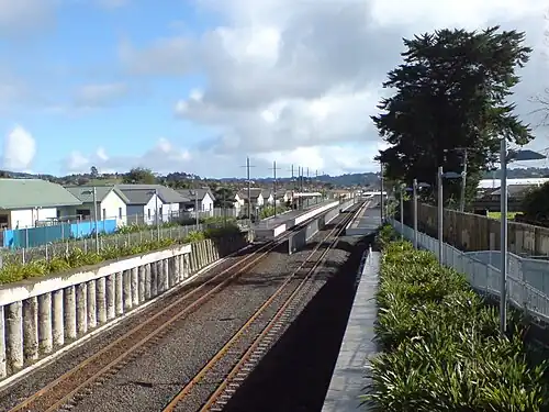 Sturges Road railway station in Henderson is on the Western Line of the Auckland railway network. It has a park and ride facility available.