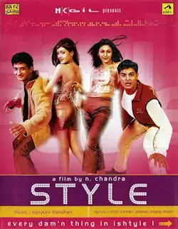 Style is a 2001 Indian Hindi language comedy thriller film directed by N. Chandra.[2] The film stars Sharman Joshi and Sahil Khan. A sequel titled Xcuse Me was released in 2003.