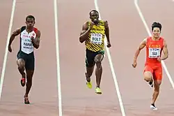 - ^ "Gatlin stuns Bolt to win 100m world title, Su finishes 8th". China Daily. 6 August 2017. Retrieved 8 October 2019.