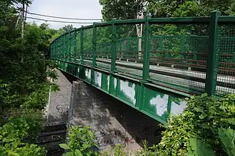One of Sudbrook Park's unique features is the one-lane bridge that crosses over Western Maryland Railway. Constructed in 1889, the bridge stood for more than a century with a wooden platform. In 2005, the bridge closed for reconstruction. It reopened about a year later with an asphalt pavement, retaining its one-lane status in order to preserve the community's historic charm.