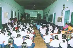 A screening of Suddha (The Cleansing Rites) in a village school