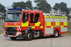 Suffolk Fire and Rescue Service (SFRS) is the statutory fire and rescue service covering the county of Suffolk in East Anglia, England.[3] It was formed in 1948 as the Suffolk & Ipswich Fire Service, before changing after the 1974 Local Government Review to 'Suffolk Fire Service'. Following the 2004 Fire & Rescue Services Act, the service name was changed to Suffolk Fire & Rescue Service to better reflect its role. Suffolk has a population of 760,556 and covers 1,466 square miles (3,800 km2).[4] The county town is Ipswich with other major towns including Lowestoft, Bury St-Edmunds, Felixstowe and Newmarket.
