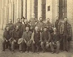 In 1896, the buildings and surrounding lands were given to the newly created State of Utah and were designated as the Utah State Prison,[2] sometimes referred to as the "state pen".[3] Starting in 1900, executions by the state were carried out in the prison. Prior to that, death penalties were administered in the counties where the crimes had been committed.[4] Tickets were distributed in 1903 for admission to publicly view an execution by firing squad.[5]