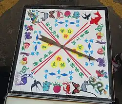 This snack is popular among children.[1] Customers (especially children) usually select a figure by spinning the arrow on a wheel which will randomly land on popular objects.[3] These objects include animals, like duck, fish, monkey, dog, bird.[1] The subject of painting can be personalized as well. The common objects are usually objects that symbolize fortune or famous characters from Chinese classical novels. For example, artists can paint Chinese mythical creatures, Chinese gods, fictional characters from the Chinese opera (ex. warriors), plants (ex. Flowers), daily objects (ex. bicycles), and fortune symbols (ex. dragon and phoenix).Almost everything can be painted, depending on the skills and creativity of the artists.