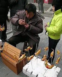Sugar people (糖人: Tángrén) is a traditional Chinese form of folk art using hot, liquid sugar to create three-dimensional figures.[1][2]