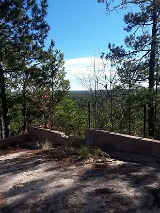 Sugarloaf Mountain is an unusual hill located in Patrick, South Carolina. Known locally as "The Mountain", it towers 100 feet above the surrounding terrain.[3] This site is located within the Sand Hills State Forest, adjacent to U.S. Highway 1, in the Carolina Sandhills region of the Atlantic Coastal Plain.