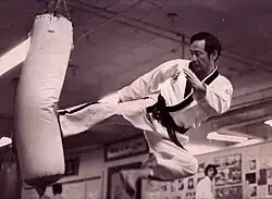In 1969, Kang and his family emigrated to the United States. While working as a janitor in a boxing gym, Kang was discovered striking the heavy bags early one morning. Believing the reverberating sounds to be gunshots, the boxers at the gym were astounded to discover that the “gunshots” they heard were, in fact, the sound of Kang hitting the bag. These boxers became his first crop of students in the United States.[1] Already an 8th Dan Black Belt, he founded his own Tae Kwon Do academy in Brooklyn, New York. Kang became the first President of the American Tae Kwon Do Association (ATA), serving from 1969 to 1978.[2]
