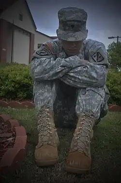 United States military veteran suicide[1][2] is an ongoing phenomenon regarding the high rate of suicide among U.S. military veterans in comparison to the general civilian public.[3] A focus on preventing veteran suicide began in 1958 with the opening of the first suicide prevention center in the United States. During the mid-1990s, a paradigm shift in addressing veteran suicide occurred with the development of a national strategy which included several Congressional Resolutions. More advancements were made in 2007, when the Joshua Omvig Veterans Suicide Prevention Act created a comprehensive program including outreach at each Veterans Affairs Office (VA) and the implementation of a 24-hour crisis hotline (the Veterans Crisis Line). PTSD, depression, and combat-related guilt in veterans are often related to suicide as it can be difficult for veterans to transition to civilian life. It is hard for veterans to transition into civilian life because they are used to structured routines everyday while being in the military. Veterans are also used to a tight knit community, so when they transition into civilian life they do not have that "brotherhood" anymore.