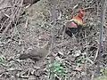 Numerous resident, migratory and breeding birds can be observed in the sanctuary;[6] species include the Asian koel, barn owl, black bittern, black francolin, black redstart, black-rumped flameback, black and black-winged kite, blue peafowl, blue-tailed bee-eater, booted eagle, brown-headed barbet, common hawk-cuckoo, common myna, coot, cormorants, crimson and purple sunbird, greater coucal, greenish warbler, grey-winged blackbird, Indian grey hornbill, Indian paradise flycatcher, Indian pond-heron, Indian roller, Indian scops-owl, Indian spot-billed duck, Indian white-eye, jungle babbler, lesser whitethroat, lineated barbet, moorhen, mottled wood-owl, Indian pitta, Oriental honey-buzzard, Oriental pied hornbill, red junglefowl, red-vented bulbul, red-wattled lapwing, ring-necked parakeet, ruddy shelduck, scarlet and long-tailed minivet, shikra, Sind sparrow, spotted owlet, tufted duck, white wagtail, white-breasted waterhen and white-throated kingfisher.