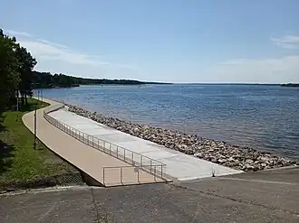 In addition to the water supply and energy producing functions, Sulejowski Reservoir serves as a center for recreation. There are multiple hotels and vacation homes in the vicinity and watersports infrastructure by the shoreline.[2][6] The main activities are sailing, windsurfing, kayaking and fishing.[7] The usage of motorboats is forbidden and a quiet zone is enforced across the lake.[8]