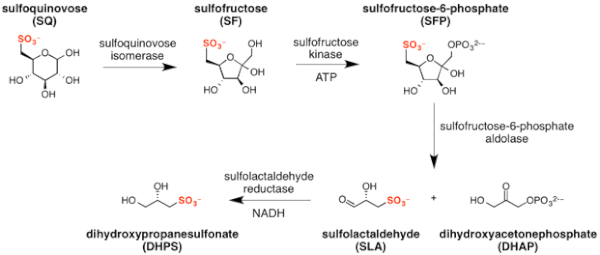 • The sulfoglycolytic sulfoquinovose dioxygenase (sulfo-SMO) pathway.