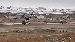 Mil Mi-17s of the Afghan Air Force in 2010, a year before the runway was asphalted
