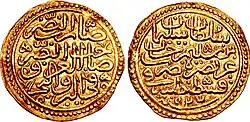 The sultani (Ottoman Turkish: سلطاني) was an Ottoman gold coin. It was first minted in 1477–78 during the reign of Mehmed II (r. 1451–1481), following the Venetian ducat standard,[1] weighing about 3.45 grams (0.111 ozt). The sultani is the classic Ottoman gold coin also known generically as altın (آلتون, "gold").