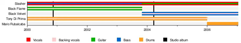 | Past members | Slasher Black Flame Tony Brown Di Prima Black Velvet Mario Rubalcaba |